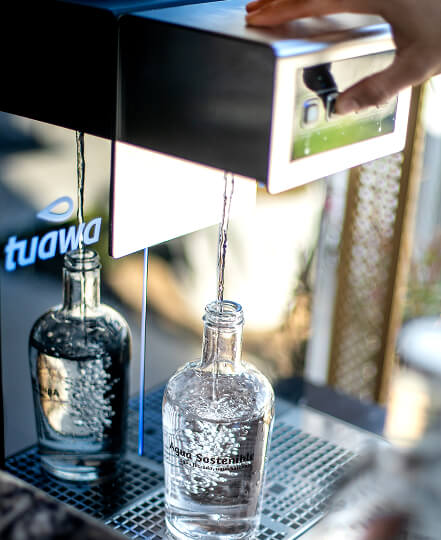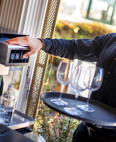 Eleva la experiencia de tus comensales con agua filtrada de la máxima calidad y elimina el coste y la gestión de las botellas de plástico de un solo uso.